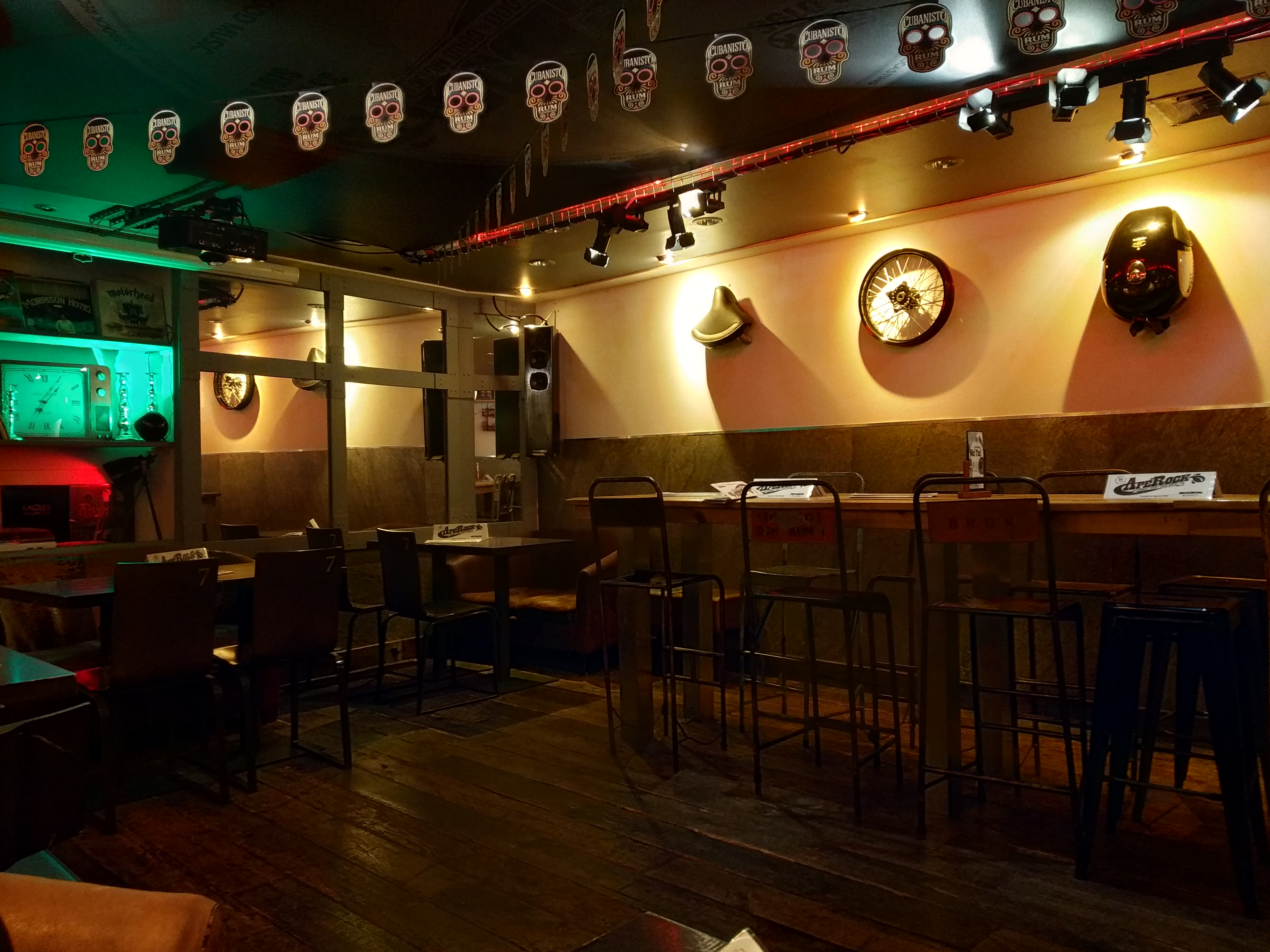 Super petit bar, ambiance rock et bikers (sans le côté beauf ni violent), les gérants sont vraiment sympas et les prix sont très corrects :)