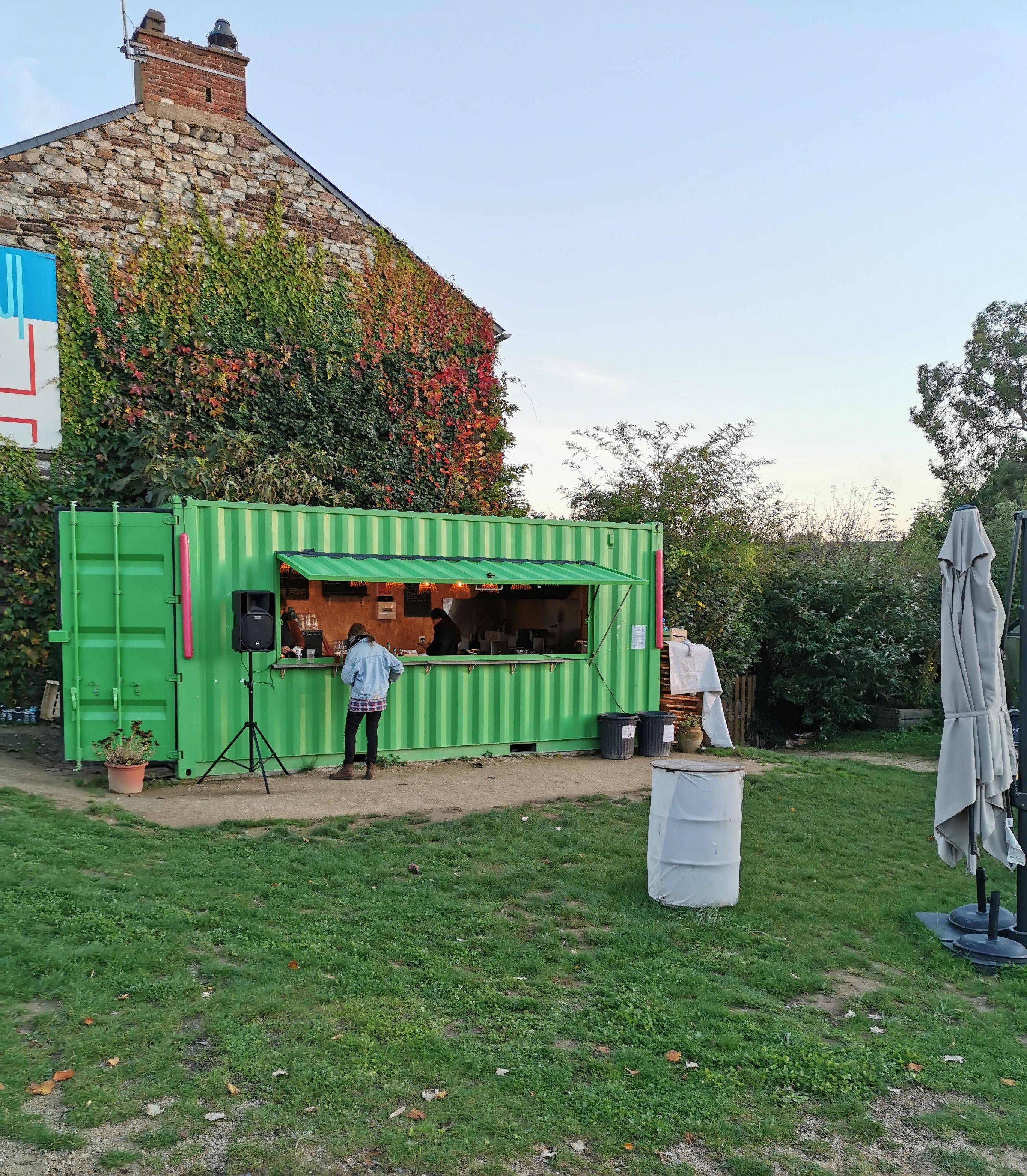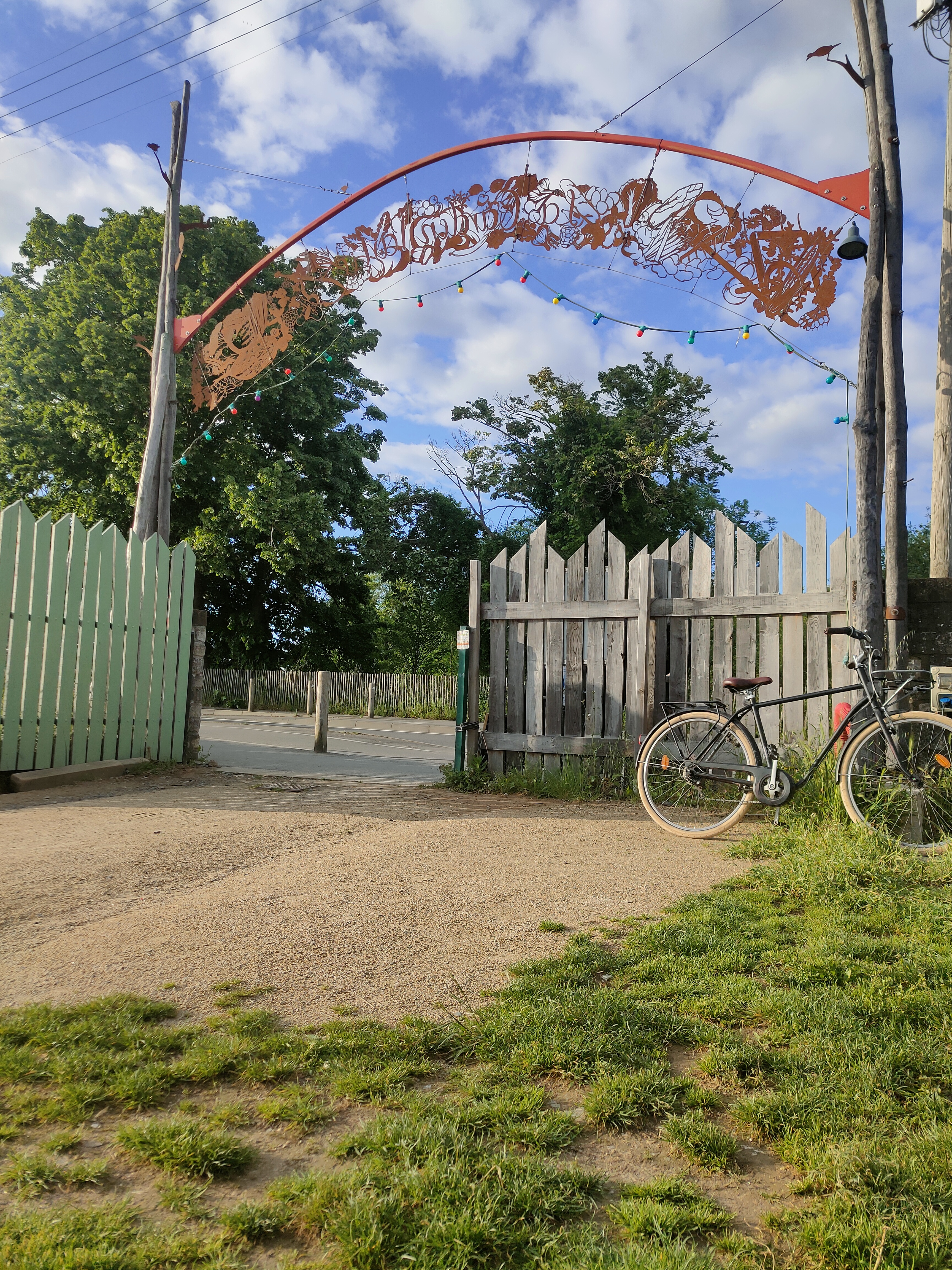 Très bel endroit ensoleillé au bord de l'eau. Un grand espace vert avec des chaises et des tables, de la musique. Un bar avec du bin cidre et une cuisine délicieuse 😋